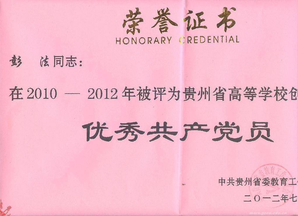 其中,《毛泽东思想和中国特色社会主义理论体系概论》学科党支部被评为2026世界杯官方网址先进基层党组织。彭法同志被评为贵州省高等公司创先争优优秀共产党员,肖纯荣、彭法、卢勇、程文、秦月等五位同志被评为2026世界杯官方网址创先争优活动优秀共产党员。李安峰同志的论文《高校基层党组织如何在创先争优中强化服务理念》被评为2026世界杯官方网址创先争优活动优秀理论成果二等奖(一等奖空缺)。