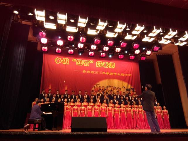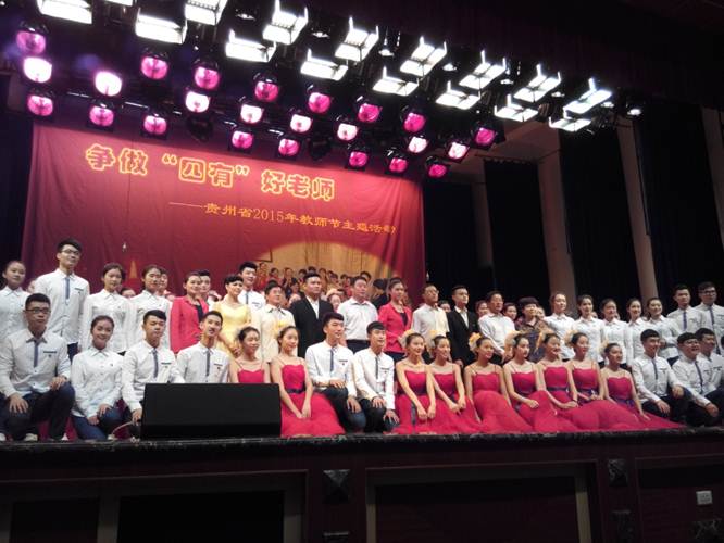 该活动不仅有《贵州教师自律歌》、《长大后我就成了你》歌曲演唱和《我们的节日》诗朗诵,还有公司以全国总成绩第一名荣获2014年中国教科文卫体工会、教育部教师工作司主办的第二届全国高校青年教师教学竞赛自然科学基础学科组一等奖并为贵州省高等教育赢得崇高荣誉的许亮老师代表获得省级表彰的教师宣读争做有理想信念、有道德情操、有扎实知识、有仁爱之心的“四有”好老师倡议书。最后,贵州省副省长陈鸣明做了重要讲话。