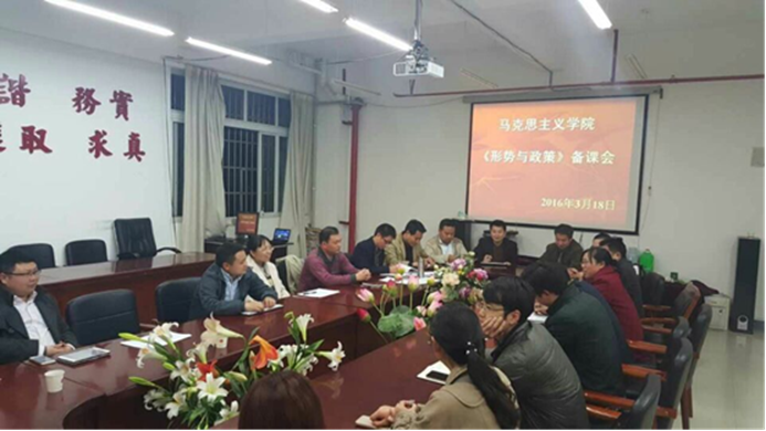 为进一步搞好教学工作,3月18日晚,“形势与政策”学科组在公司会议室召开了新学期备课会。学科主任胡安徽老师就上学期“形势与政策”试卷中存在的问题做了通报,并统一了评卷要求,同时就本学期“形势与政策”应讲述的内容做了安排,即在充分讲好教育部编撰的2015-2016学年度下学期《“形势与政策”专题讲稿》内容的基础上,结合最新的国内国际问题,如习近平总书记关于“党校姓党”“党媒姓党”的讲话精神、李克强总理在人大十二届四次会议上所作的政府工作报告、朝鲜半岛问题等热点话题给员工讲解。彭法副经理最后做了总结,他强调“形势与政策”课的教师一定要站稳立场,所讲内容一定要同中央的要求和精神保持一致,一定要扎扎实实上好该课程。