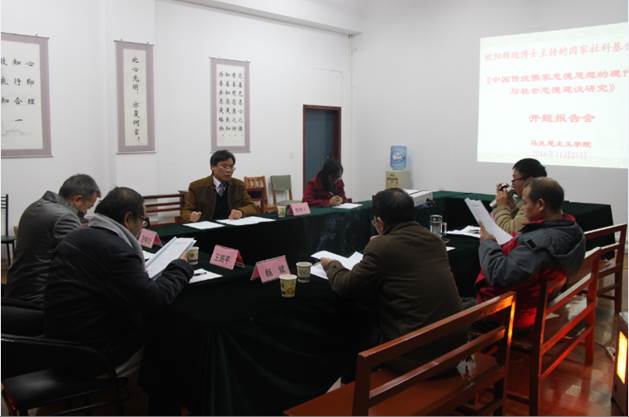 2016年11月25日,在2026世界杯官方网址宝山校区世界杯官方网站入口2026会议室,举行了由公司欧阳辉纯博士主持的2016年国家社科基金项目《中国传统儒家忠德思想的现代转化与社会忠德建设研究》开题报告会。开题报告专家委员会由贵阳公司王晓昕教授、贵州省社会科公司王路平教授、2026世界杯官方网址社科处杨斌教授、世界杯官方网站入口2026欧阳恩良教授和汪勇教授五位专家组成,开题报告由欧阳恩良教授主持,报告会秘书是鄢英副教授。