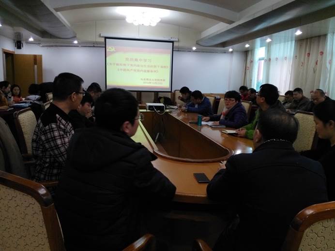 2016年12月23日下午,公司党委在宝山校区田家炳教育书院三楼三会议室召开组织生活会,专题学习《关于新形势下党内政治生活的若干准则》和 《中国共产党党内监督条例》。公司全体教师党员参加,党委书记杨文武同志主持。