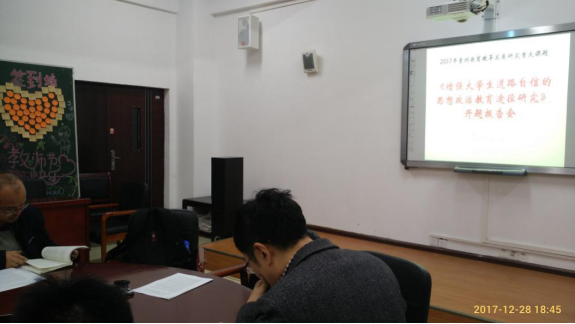 公司汪勇教授组织专家对其获批的2017年贵州教育改革发展研究重大招标课题——《增强老员工道路自信的思想教育途径研究》的进行开题。按照立项课题要求,汪勇教授邀请毕业于北京大学、大连理工大学、河海大学、武汉理工大学四所高校思想政治教育专业的4名博士、专家(其中教授1人,副教授3人)于2017年12月28日晚19:00——22:30在贵安新区大学城世界杯官方网站入口2026会议室对中标课题进行开题,尤其是专门针对本课题的研究内容及研究方案等可行性等进行深入细致的讨论和商量。