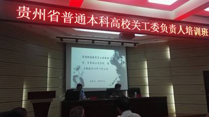 贵州省本科高校关工委负责人培训班在贵州师范公司举办。公司汪勇教授受教育厅关工委邀请于2018年8月26日上午9:30—11:30给全省普通高校关工委负责人作《学习习总书记5月2日在北大与师生座谈讲话》讲座。经过一个月的充分准备,汪勇教授于9月28日按照安排和要求在贵州师范公司贵州师范公司宁静楼继续教育公司报告厅给来自全省21所普通本科高校的关工委负责人共70余人作预定主题讲座。讲座不仅深入学习习总书记5月2 日与北大师生座谈时讲话的主要精神,同时还对习总书记在9月10日的全国教育工作会议上讲话精神作了深入阐述。汪勇教授备课充分,理论联系实际,深入浅出原汁原味地就习总书记的讲话精神作了深入的讲解,使全省普通本科高校关工委负责人对习总书记的两次重要讲话有了更加深入的了解和认识,进一步明确了工作的目标,取得了较好的成效。
