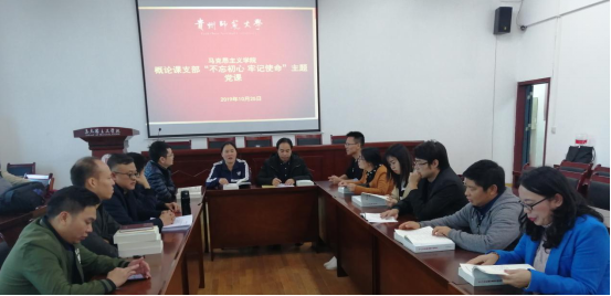 2019年10月25日,世界杯官方网站入口2026“概论”教研室在宝山校区公司会议室开展了“不忘初心,牢记使命”主题教育。“概论”教研室全体教师参加。本次活动由“概论”教研室宣传委员牟蕾围绕“不忘初心 廉洁自律”作了主题发言。教研室党支部书记陈瑞欣总结发言。