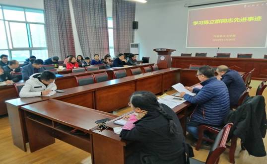 汪书记首先介绍了陈立群同志的先进事迹,号召全院教师深刻领会陈立群同志先进事迹的高尚精神。汪书记指出,陈立群同志是在优先发展教育、建设教育强国实践中涌现的教书育人楷模,是新时代“四有”好老师的杰出代表。他坚守初心,用教育阻断贫困的代际传递,充分展现了新时代教育工作者的奉献精神和崇高品格。我们要学习领会他初心不改、矢志不渝的政治品格;学习领会他艰苦奋斗、苦干实干的可贵担当;学习领会他扎根基层、甘于奉献的崇高精神。最后,汪书记对公司全体教师提出了具体的学习要求,即向陈立群同志学习并投身于教学工作岗位中去,为教育做出自己应有的努力和贡献。