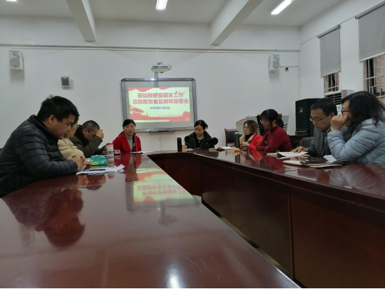 会议的第一项议程是基础教研室主任陈道武对教研室在2019年的工作进行回顾。在过去的一年,教研室克服了各种困难,顺利完成了公司常规教学计划的同时,在教学与科研上取得较好成绩,权麟春和章凤红获国家社科项目、章凤红、宋俊成、权麟春和陈道武四位教师获教育部项目;陈勇军老师荣获省委统战部理论政策研究成果创新优秀奖;章凤红、陈曦老师指导员工摄制电影《向黔向前》荣获教育部实践教学(微电影)作品优秀奖;刘五景、陈晓娟老师获得了公司、公司教学奖项。