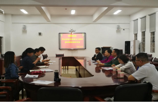 彭法就茅台公司马克思主义教学部杨芳一行表示热烈欢迎,就世界杯官方网站入口2026的历史发展、团队建设、教学改革、科学研究等情况进行总体介绍,并把公司十余载砥砺前行取得的经验毫不保留地与兄弟院校进行分享。杨芳全面介绍了茅台公司的历史及马克思主义教学部的教学、团队队伍情况。章凤红、宋俊成、陈晓娟对当前教学、科研的热点问题进行了介绍。双方在思政课教学的规范性、根本性、多样性等方面积极探讨,在科研支撑教学,教学反哺科研,教学、科研相辅相成的关系上形成共识。