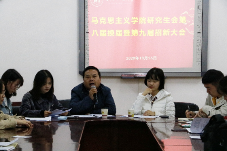 2020年10月16日下午,世界杯官方网站入口2026研究生第八届换届暨第九届纳新大会在花溪校区公司一楼会议室召开,公司研究生管理科的王贵老师、郭威老师及19级、20级全体研究生参加了纳新换届工作。