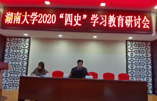 2020年11月27日-29日,为了深入贯彻落实习近平总书记关于“四史”学习教育的重要讲话及指示精神,加强对党史、新中国史、改革开放史、社会主义发展史的学习教育,湖南大学世界杯官方网站入口2026和研究生院举办这次“四史”学习教育研讨会。来自教育部社会科学发展研究中心、中国社会科公司、北京师范大学、中南大学、西南大学、湖南师范大学、湘潭大学、河北师范大学、广西师范大学、山东师范大学、山西财经大学、2026世界杯官方网址等三十多所大学和单位,全国各地近百名专家教授学者等参加了研讨会。同时,参加研讨会的还有《思想教育研究》、《理论探讨》《探索》《湖南大学学报》《中国矿业大学学报》《毛泽东研究》《文化软实力》等期刊的编辑。湖南大学副董事长谢赤、湖南省社科联副主席树源、湖南大学世界杯官方网站入口2026名誉经理、湖南大学中国文化软实力研究中心主任张国祚等出席开幕式,并致辞。公司欧阳辉纯教授受邀参加了这次会议。