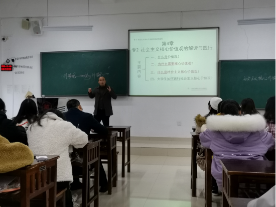 2020年12月9日,“思想道德修养与法律基础”教研室刘五景老师在2026世界杯官方网址花溪校区GJ3404教师上了一堂有关“从价值观到核心价值观”的公开课。公司汪勇经理、陈道武、韩玮、教务秘书张铖等老师参加了此次公开课。