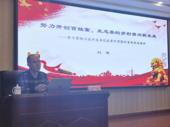 刘军老师从习近平总书记在贵州考察纪实、习近平总书记首站考察点蕴含的深意,以及习近平总书记此次贵州之行的五大看点等三个大的方面对2021年习近平总书记来到贵州考察期间发表的重要讲话精神进行了深刻阐述。
