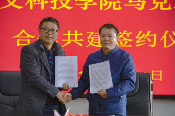 在全体与会人员见证下,汪勇与刘小文两位经理代表双方公司签署结对帮扶共建协议。
