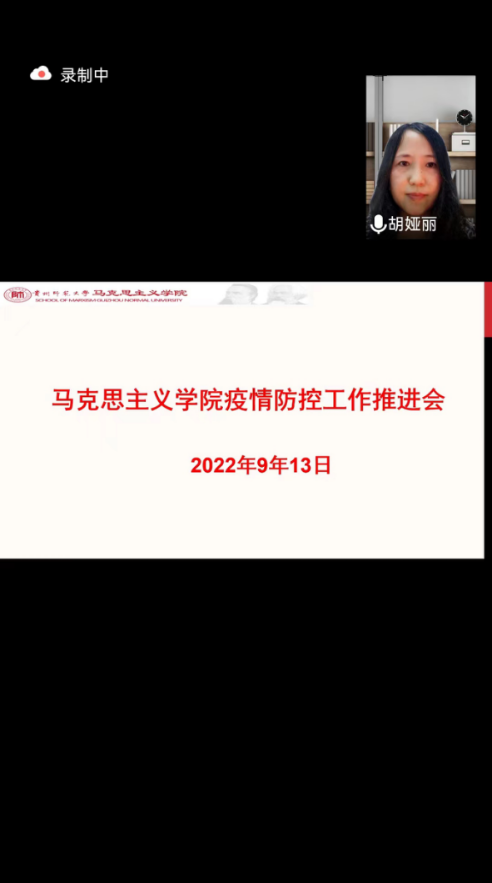 胡娅丽组织学习了严防“30种疫情防控违法违规行为”有关文件,并强调,当前疫情形势严峻,需要我们齐心协力,共克时艰。一要遵规守纪,做好本份。师生要以高度自觉,不折不扣执行防疫政策,为早日打赢抗疫战役守好本份。二要谨记责任,不忘身份。在抗疫一线发挥志愿者作用,在线上线下彰显思政课教师本色,书写好“抗疫”思政大课。三要作好统筹,协力攻坚。并从如何统筹抓好花溪、宝山两校区师生抗疫工作、如何统筹抓好疫情防控与业务工作等方面提出了要求。