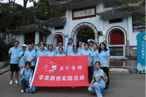 随后,实践队跨越358级台阶来到了遵义红军烈士陵园。到达纪念碑前,大家整齐列队,肃然起敬,向长眠于此的革命先烈默哀并鞠躬。了解了邓萍烈士、龙思泉烈士的故事,更加深刻地理解了他们的伟大精神和无私奉献。实践队不仅缅怀了革命先烈的丰功伟绩,也进一步感悟了长征精神和革命精神。