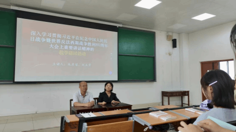 9月11日下午,世界杯官方网站入口2026在公司东校区公共教学楼3401教室组织开展以“深入学习贯彻习近平总书记在纪念中国人民抗日战争暨世界反法西斯战争胜利80周年大会上重要讲话精神”为主题的教学研讨活动。此次教研活动由世界杯官方网站入口2026“思贤名师”朱彦瑾副教授、刘五景副教授两位老师担任主讲人,其中,朱彦瑾兼任主持人,教师教育公司23级物理学、生物科学、地理科学专业优师班的120余名本科生参加。